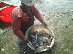 5月29日,贡井区龙潭镇池塘“圈养”零排放内循环养殖基地内,一片热闹非凡、鱼儿跳跃、欢声笑语、喜获丰收的景象呈现在眼前,拉网、起网、挑鱼、称重、计数、活蹦乱跳的鲈鱼被顺利转入等候的鱼车,人们忙得不亦乐乎。基地负责人刘晓东高兴地说:“这批鲈鱼8两到1.3斤,平均1斤左右,塘边价为21元/斤,这次预计装车5000—6000斤,能卖10多万元嘞。”收获的喜悦溢于言表。刘晓东的鲈鱼养殖基地于2019年3月
