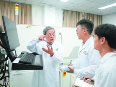 合江县融媒体中心罗平亚(左一)指导博士研究生开展科研工作。南充市融媒体中心记者梁洪源摄在西南石油大学成都校区静谧的实验室内,一位满头银发的长者正埋首于浩繁的文献资料中。他,就是中国工程院院士——罗平亚。2025年,已至耄耋之年的他,依然如一颗永不松动的“钻头”,向着油气勘探最艰深的地层发起冲击。 1958年,当罗平亚踏入位于南充的四川石油学院(现西南石油大学)校门时,便与“工业的血液”结下了不解之缘。从嘉陵江畔