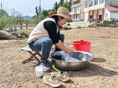 南充市融媒体中心您的浏览器不支持 video 标签。 “有花的地方就有奔头,有奔头的日子就是甜的。” 说这话时,45岁的杨冬梅停下搓洗衣服的手,目光投向蜂箱旁忙碌的丈夫。 杨冬梅在搓洗衣物。 陈继正抽出一块巢脾,上面爬满密密麻麻的意大利蜂。金黄的蜜汁从蜂巢渗出,在春日暖阳下泛着琥珀般的光泽。 这对来自云南临沧的夫妻,今年把“走蜂追花”的第一站选在了安岳。二十多天前,他们载着150多个蜂箱在此落脚,还要再待一个