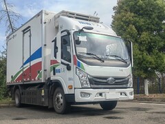 青青资阳,春意正浓,一股“氢”风悄然吹入这座位于成渝双核节点的城市。 近日,记者走进南骏汽车集团试车场,来了一场氢能源车的试乘之旅:车轮碾过湿漉漉的路面,没有记忆中柴油机的轰鸣,只有低沉的电流声与轮胎摩擦声交织。随着试车员王前超轻踩“油门”,一辆印有“南骏氢马 氢驰未来”字样的4.5吨氢燃料电池冷藏车平稳滑出。加速线性而柔和,制冷机组安静得令人惊讶,排气管滴落的水珠在阳光下晶莹剔透——这大概是“绿