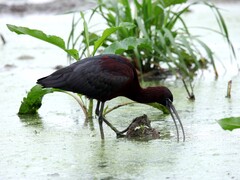 遂宁新闻网近日,眉山市洪雅县中保镇的一片浅滩湿地迎来了七位特殊的“客人”。几只身形修长、羽色变幻的鸟儿在此驻足栖息、悠然觅食,经洪雅县国有林场林业高级工程师王家才辨认,确定为国家一级保护野生动物——彩鹮。彩鹮又一次在迁徙途中“打卡”洪雅,成为当地生态环境持续向好的生动注脚。 彩鹮正在湿地觅食。王家才 摄 时值仲春,暖阳洒在中保镇的浅滩上,水面波光粼粼。七只彩鹮或结伴漫步于水草间,用细长而下弯的喙在泥沼中探