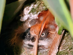 资阳观察您的浏览器不支持 video 标签。 成鸟在枝叶间穿梭往复。 “啾啾……啾啾……”春日清晨的阳光刚洒进庭院,成都市龙泉驿区居民陈先生就被一阵清脆又微弱的鸟鸣唤醒。他轻手轻脚走到茶花树下,抬眼望去,发现几个熟悉的身影,枝桠间的精致鸟巢里,几只毛茸茸的小家伙正张着嫩黄的小嘴,等待喂食。通过持续观察、拍照比对,最终确认是国家“三有”保护动物红头长尾山雀。陈先生发现,这个配色像小熊猫的“房客”竟连续两年在
