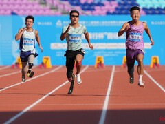 仁和区融媒中心12月9日,全国第十二届残疾人运动会暨第九届特殊奥林匹克运动会田径赛场传来令人振奋的消息。在男子100米T64级决赛中,成都运动员、“90后”小伙胡玉涛,以11.84秒的惊人成绩率先冲过终点,不仅为四川代表团摘得一枚宝贵的金牌,更将该项目15.36秒的原全国纪录大幅提升了3.52秒。 在胡玉涛率先冲过终点线的时候,观众席上的妻子王文杰兴奋得手舞足蹈,随后第一时间为丈夫送上了拥抱。 ▲胡玉涛(