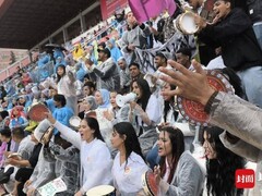 四川新闻网10月19日,“川超”联赛南充丝绸源点队和成都锦城队的比赛,在四川南充西华师范大学体育场开赛。 外国球迷们为川超比赛欢呼。(拍摄:谢杰) 西区看台上,一群不同肤色的面庞,格外引人注目。这是来自西华师范大学国际学院和南充职业技术学院国际教育学院的留学生“球迷团”。 封面新闻记者现场采访了解到,他们中,有些已经来中国2年,有些才刚到1个月。观赛时,大家用中文喊“加油”、四川话喊“雄起”,还以英文、法