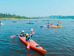 四川新闻网“双手握紧船桨,身体重心压低,保持平衡!”在成都市金堂县科玛小镇沱江段的水面上,刘烨炀正耐心地指导学员掌握皮划艇技巧。原是四川省激流回旋队队员、全国皮划艇激流回旋青年锦标赛男子单人划艇冠军的他,而今在金堂做起了皮划艇教练,“这两年爱上皮划艇运动的人越来越多,我带过的学员不少都是忙碌的上班族。”在这片水域上,他见证着皮划艇运动从专业竞技走向大众生活的热潮。 沱江之畔 “小众运动”划出 “全民新潮流