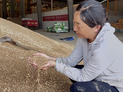 川观新闻您的浏览器不支持 video 标签。 “夏收夏种两头忙。走,带你看刚收的麦子!”6月5日,当记者到达四川广汉国家现代农业产业园时,种粮大户杨萍熟练地单手操控着插秧机,将其稳稳停靠在田坎边。 走进烘干中心,只见金黄的麦子堆积如山。杨萍捧起一把饱满的麦粒,言语中满是欣喜:“今年我们最高亩产665公斤。” 杨萍向记者介绍小麦丰收情况。人民网记者 朱虹摄 “亩产,你和汤博士谁的更高?”记者问道。 “