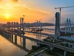 雅安市融媒体中心记者从成达万高铁公司获悉,10月14日,随着最后一节钢箱梁经过32小时的吊装和焊接,标志着成都至达州至万州高速铁路(以下简称:成达万高铁)全线控制性工程遂宁涪江特大桥顺利合龙,为成达万高铁按期通车奠定了坚实基础。 遂宁涪江特大桥位于四川省遂宁市船山区境内,是全线“3隧4桥”重难点控制性工程之一,大桥全长5585.4米。主桥为“H”型特殊结构双塔双索面钢混结合梁斜拉桥,主跨长305米,是双塔双索面