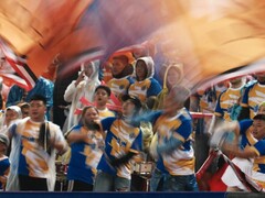 封面新闻您的浏览器不支持 video 标签。 “川超”打到第七轮,比赛越来越激烈,球迷们的“造梗”热情也快沸腾了。 内江主场打自贡,球迷不谈对抗,只讲情谊,“燊龙重龙都是龙”——这波“认亲”操作,格局瞬间打开;资阳队主场不敌泸州队,继续“0胜0积分”,资阳球迷直接把“南0王”穿上了身;绵阳对阵甘孜,开场14秒闪电进球,引发网友感叹:科技城,就是快!巴中0:0战平遂宁,网友说“四舍五入”一下,约等于巴中打