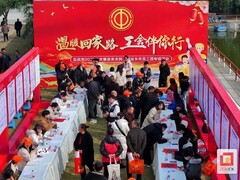 近日,自贡市贡井区桥头镇四月阳光农场的广场上洋溢着浓浓的年味儿。当天,百余名自贡籍农民工欢聚一堂,参加由自贡市总工会、自贡市人力资源和社会保障局和自贡市农民工服务中心联合举办的“温暖回家路,工会伴你行”关爱服务农民工暨返乡农民工团年饭活动,共迎佳节、共叙情谊,共话未来。 早上10时许,团年饭还未开席,活动现场早已热闹起来。不仅有市书法协会老师在现场挥毫泼墨,将一个个福字帖和一副副春联送给大家