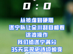 泸州市融媒体中心35天,840个小时 从净负六球到零封对手 这是一组记录着 遂宁足球涅槃重生的数字 更是一座城市拼搏精神的 最美注脚 遂宁舍得干队加油