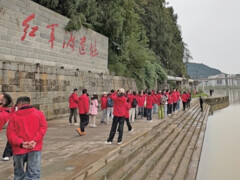 四川观察大渡河汹涌澎湃,嘉陵江蜿蜒千里,两江河相隔千里,却在四川大地共同吟唱着一曲长征壮歌。 日前,“长征路上看四川”大型宣传教育活动广元行启动。连日来,由专家学者、文艺工作者、媒体记者、青少年学生和志愿者组成的五支队伍,通过重走长征路、主题采访、文艺采风等形式,重温红军在广元的战斗历程。 广元市苍溪县红军渡渡口遗址 嘉陵江畔,苍山如海,烟雾迷蒙。广元苍溪红军渡原名塔山湾渡口,刻在石壁上的红军标语历经风