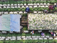 宜宾融媒这几天,湖北经销商徐先生多次前往蓬溪县红江镇收购萝卜。这里的萝卜口感好、耐储运,销路一直很好。红江镇,这个蓬溪县的丘陵小镇,每年仅靠萝卜收成就能实现1个“小目标”,这里的“萝卜经”有些啥名堂呢? 四川蓬溪县红江镇渝遂绵优质蔬菜生产带白萝卜丰收。谭皓摄 萝卜经·口碑生意“娃娃亲” 1月17日,湖北经销商徐先生又一次来到红江镇,在地头监督工人打包萝卜。长短均匀的白萝卜被装袋码齐,静待装车。48小时