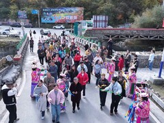 央视新闻日前,“朝九晚武”体验白马文化·跟着电影《白马姐妹》游平武活动在平武县白马藏族乡祥述加寨启幕。各地游客齐聚这片秘境之地,在雪山与彩林交织的绝美画卷中,沉浸式邂逅白马藏族的独特文化,感受电影IP与在地风情碰撞出的别样魅力。 活动当天,祥述加寨一早便洋溢着热闹氛围。身着华丽民族盛装的白马藏族同胞,以最高规格的礼节迎接八方来客。国家级非物质文化遗产“跳曹盖”的雄浑舞步踏响村寨,面具上的古老纹路随动作