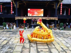 9月30日下午,“多彩贡井·欢乐国庆”井盐文化传承季——2025年第三届贡井老街河街文化旅游系列活动启动仪式暨文旅推荐官选拔大赛(决赛),在贡井南华宫正式启幕。 启动仪式亮点纷呈,现场不仅举行了自贡市贡井区影视拍摄基地授牌仪式,还为井盐天车建造及修缮技艺、南华茶社盖碗茶冲泡技艺等9个入选第五批贡井区非物质文化遗产的项目授牌颁奖。随后,一场洋溢着节日喜庆氛围的舞龙与腰鼓巡游从南华宫出发
