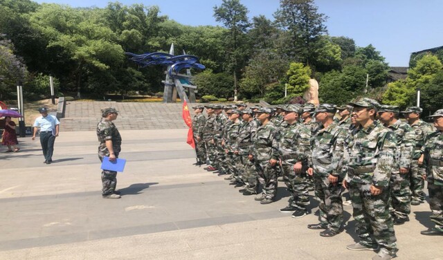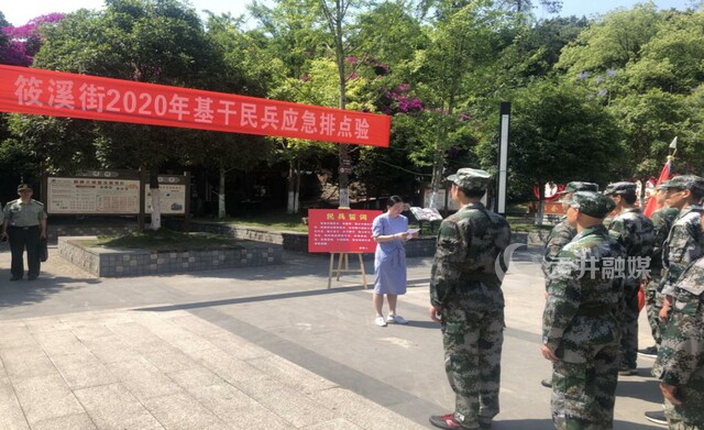 5月19日,贡井区筱溪街民兵应急排共计30余名民兵在张家花园南大门接受点验。区人武部政委赵金龙、街道党工委书记刘学渊、街道武装部部长廖俊等领导出席点验大会。