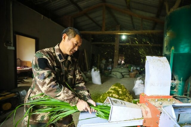 一花独放不是春,万紫千红春满园。随着发展规模扩大,作为当地土生土长的夫妻俩,也希望用自己的养殖技术帮助一些经济收入不好的村民。“兔子不吃料怎么办?”“兔子要产崽了该注意些什么?”经常都有村民来找他们咨询。除了提供技术支持以外,他们还让村上有残疾的村民帮忙种植喂养兔子的黄竹草和欧洲巨菊草,解决了他们干不了重活,不会养殖和销售难的问题。“在这里干活比去外面好得多,离家近,帮忙打饲料120元一天,一个月能拿2000多。”伴随着机器的轰鸣声,曾经的贫困户——白仓村4组村民郭朝军,一边和记者交谈,一边利索地将鲜草放进机器。他告诉记者,现在除了他自己的几亩土地种上了柑橘,在养殖基地务工也增加了一笔收入。