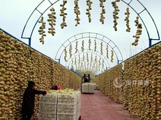 在镇特色城镇发展服务中心主任袁道付的带领下,记者又来到园区建设的又一个核心区杨柳村。这里一个万坛大头菜古法发酵场建设一期工程已经接近尾声,而就在不远处一个万米的大头菜晾晒长廊已经建成,成千上万的大头菜密密麻麻一排排挂满长廊,令人震撼叹服,已经成为附近乃至周边许多村民的网红打卡地,大家纷纷情不自禁用手机拍下壮观场面,在各种社交媒体上传播。