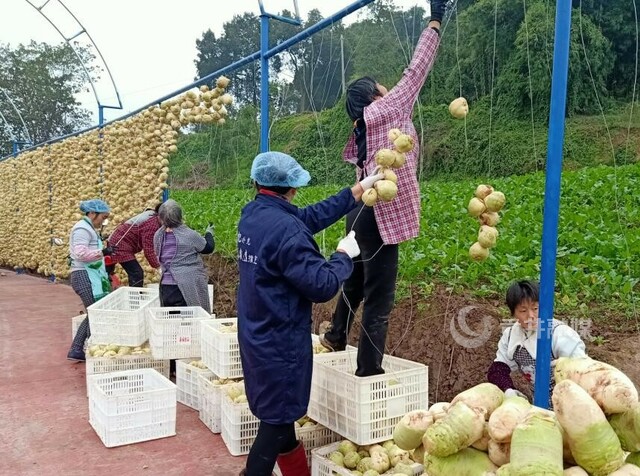 贡井区成佳镇种植加工大头菜历史悠久,早在清道光二十五年重修的《荣县志》中便有记载。如今在决战决胜脱贫攻坚,助力乡村振兴的大好形势下,这一传统农产品产业又迎来了新的发展机遇,贡井区旭水河果蔬现代农业园区成佳大头菜核心示范区建设正在当地全面建设中,一个省级现代“大头菜+高梁”的农业示范园区即将展现在人们眼前,这标志着贡井区打造“中国大头菜之乡”迈出了坚实一步。12月8号,记者在园区建设现场看到,当地干部群众和农业龙头加工企业的广大员工热情高涨,大家对项目建设充满信心,他们说园区建设给全镇乡村振兴战略深入实施带来了强劲动力,成佳镇正在朝着“农业强、农民富、农村美”的奋斗目标砥砺前行。