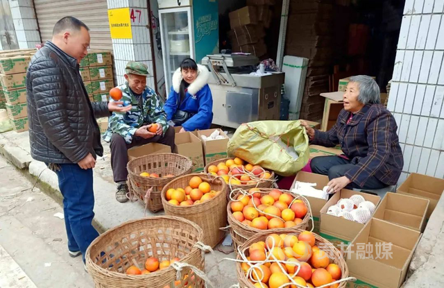 22号下午,记者在原白庙镇的街上看到,这里一家专门帮助果农销售的经营店十分忙碌,店门外摆放了一件件准备销往外地的血橙水果。在现场,来自石岭村十六组的果农刘大妈正在和老伴一起,分拣血橙,打包装箱,她说今年他们一家刚开始通过网销渠道,对外销售,今天她既要销售三十五件,发往广州。刘大妈和正在了解情况的镇干部讲,今年他家的果园估计要卖七八千血橙,实现上万元的收入。