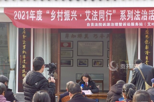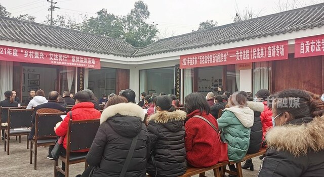 1月21日,格外热闹,2021年度“乡村振兴·艾法同行”系列法治活动启动仪式在贡井区艾叶镇六房村法治广场举行。来自省、市、区三级法院的领导及多位法官,以及贡井区政法委和艾叶镇的领导参加了启动仪式,共同见证自贡法院诉源治理暨诉讼服务站(艾叶站)的进一步实质化运行。随后,上百名村组干部和村民代表认真聆听了法治宣讲第一课——和自身利益戚戚相关的《集体经济组织成员身份认定和农村土地纠纷化解》。
