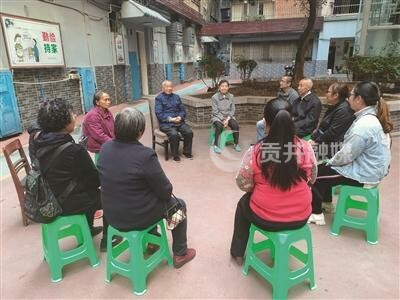 同住小区三楼的邻居戴淑琼正在家中准备午饭,听到院子里老书记在讲课,随即放下手中的家务活,来不及等电梯,一路小跑着下楼。还没坐下,又看到身后86岁的母亲,披着外套也跟着下了楼。“老书记的话很有道理,我们很喜欢听他讲课,一听见他的声音,我就下来了。”