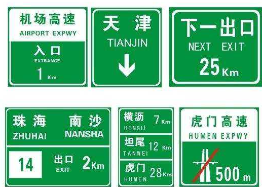 (3)蓝色的是指示指路路标志,表示前面可以走,指明道路方向、地点和距离。
