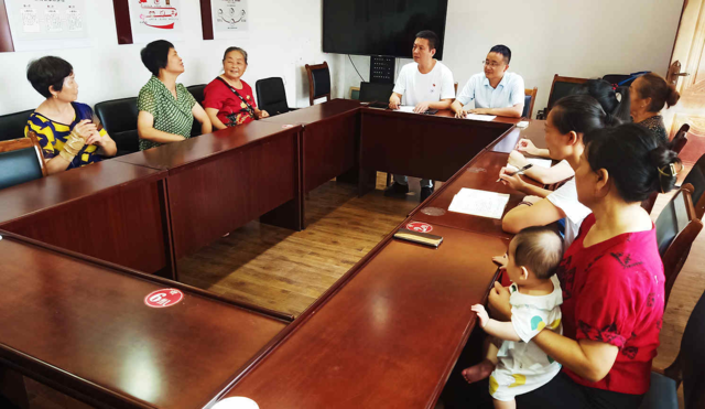 昨天(18日)上午,六房村的党员干部和部分村民在党群服务中心围绕党建引领促产业发展展开热烈的交流讨论。