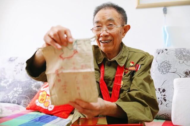 中山装干净整洁,荣誉勋章熠熠生辉。记者初见谢全志时,这位91岁的老人从三楼慢慢走下来迎接。