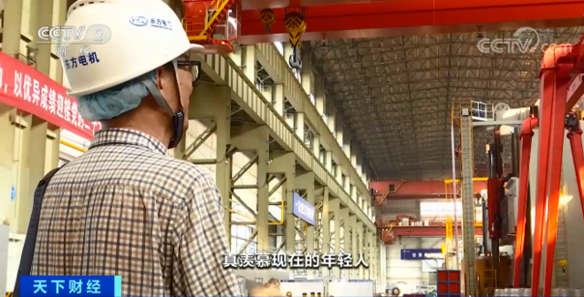 记者来到四川德阳东方电气的一座生产车间,在这个车间,不管是地面遍布的大型装备,还是空中纵横的天车,都让人感受到这里超强的制造能力,这座厂房长400米,高33米,在建成时被称为中华第一跨。
