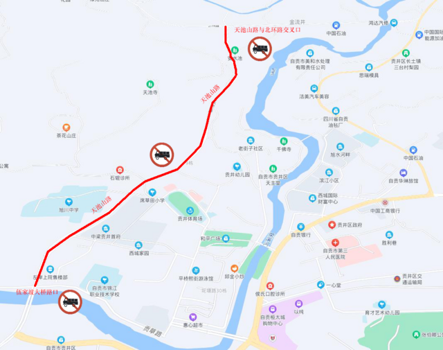 为进一步保障城市道路交通安全和畅通,减少交通拥堵、安全隐患、交通噪音和交通污染,根据《中华人民共和国道路交通安全法》等法律法规的相关规定,决定对贡井区天池山路北环路口至伍家坡大桥路口实施限时禁止中型(含)以上货运等车辆的交通组织措施。现将有关事项通告如下: