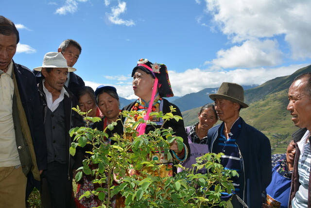 陈望慧向村民讲解玫瑰种植和管理技术。资料图 小金县委宣传部提供