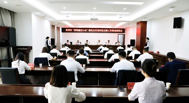 9月29日上午,贡井区举行“政银融合1+N”服务合作签约仪式暨工作推进座谈会,市政务服务和数字化管理局局长刘庭会、区人大常委会主任李伟、自贡农村商业银行党委副书记朱疆出席签约仪式。