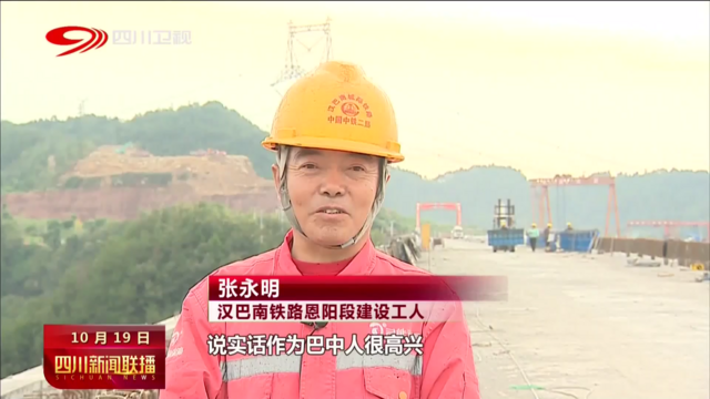 汉巴南铁路恩阳段建设工人 张永明:从钢筋到桥墩、桥面,我都参与了建设当中。说实话作为巴中人很高兴,有一条高铁从家门口过,我感到自豪。