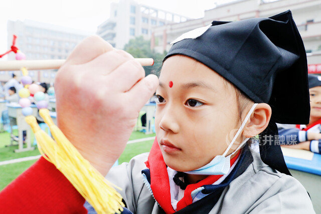 伴随着古乐悠悠、书香阵阵,“开笔礼”仪式正式开启,全校师生在满满的仪式感里领略勤学善思、尊师孝亲、崇德立志、仁爱处世的中华传统文化精髓,通过正衣冠、朱砂开眼、礼拜先师、描红作人、击鼓明志、感恩谢师、发放礼成证书等仪式,让他们接受传统文化的熏陶,做到求知求真、明礼明志,努力做一名有理想、有道德、有文化、懂礼仪的人。