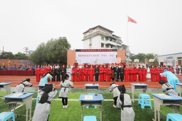 为传承优秀传统文化,弘扬中华千年浓厚文脉,11月8日上午,自贡市贡井区青杠林小学校举行一年级新生“开笔礼”活动。“开笔礼”是中国传统文化中对少儿开始识字习礼的一种启蒙教育形式,是极为隆重的典礼,被称为人生四大礼之一。