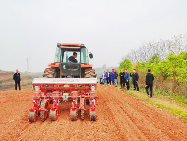 近日,由市乡村振兴发展服务中心、贡井区农业农村局、桥头镇人民政府共同组织的2023年高粱全程机械化生产试验示范机播现场会在桥头镇团结村召开。活动过程中,参会人员对高粱机播现场进行观摩,相关技术人员现场讲解高粱机播整个流程及作业效率等情况。