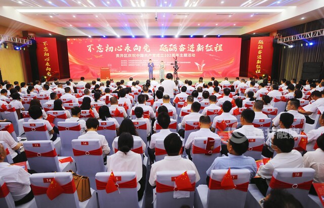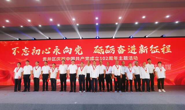 6月30日,由贡井区委、区人民政府主办,区委组织部、区委宣传部、区文化广播电视和旅游局承办的“不忘初心永向党·砥砺奋进新征程”庆祝中国共产党成立102周年主题活动在自贡航空产业园举行。党龄50年及以上老党员代表,“两优一先”代表、区老领导代表共聚一堂,礼赞党的生日。