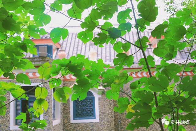 走进园内,葱郁的树丛掩映着时光,在石狮子、圆形拱门、石桥、青瓦这些地道中国建筑元素中,最值一提的是突然闪出的一栋红白相间西式洋楼,集端庄、大气、精美、俏丽于一身,让人眼前一亮。