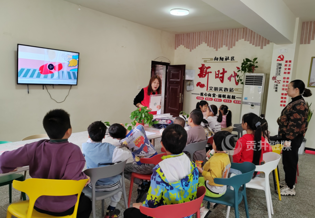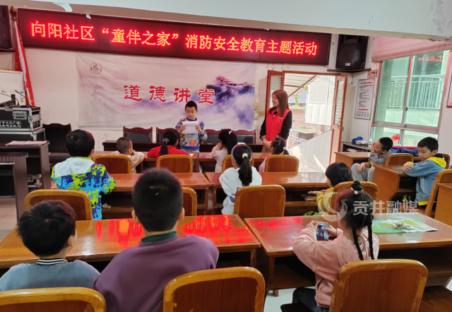 在第32个全国消防日即将到来之时,近日,贡井区筱溪街道向阳社区“童伴之家”组织社区青少年和家长,在社区新文明实践站开展以“关注消防,安全“童”行”为主题的消防安全教育活动。
