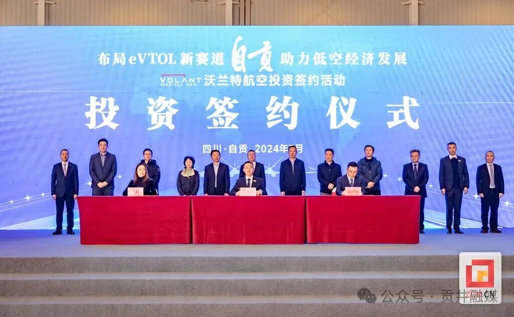 3月5日,沃兰特航空投资签约活动在自贡航空产业园举行。沃兰特航空公司宣布顺利完成1亿元A轮融资,并与鼎晖百孚、自贡创新资本等机构进行签约。据悉,沃兰特航空项目是我市产业引导基金携手鼎晖百孚公司投资的第一个标志性项目。此次投资签约不仅为企业开启了发展新空间,助推我市沃兰特eVTOL(电动垂直起降航空器)研发制造基地项目建设,更为自贡抢占低空经济重大发展机遇,促进产业转型升级、形成新质生产力注入了新动能。