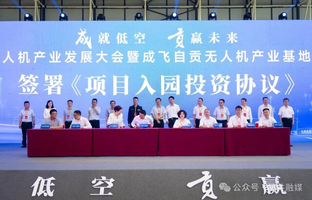 在与会人员的共同见证下,中航无人机与自贡市贡井区人民政府签订《合作协议》;融鼎岳(北京)科技有限公司、河北天启通宇航空器材科技发展有限公司、西安羚控电子科技有限公司、杭州迅蚁网络科技有限公司与自贡市贡井区人民政府签订《项目入园投资协议》。