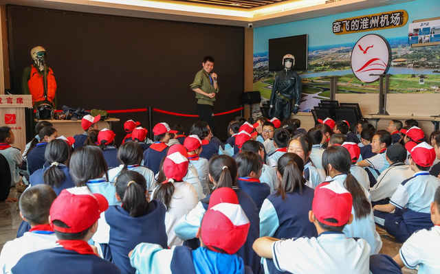 “伴随低空经济发展越来越火,渴求航空知识的小朋友、向往蓝天的游客、热衷飞行的爱好者越来越多,我们不断提升机场服务接待能力、开发更多冲上云霄的产品,配套打造了To-Fly休闲吧、蓝天美味餐厅、文创馆、模拟机室等,满足游客全天候的飞行体验和游玩需求。”据赵杰介绍,截至目前,机场已接待游客超过8万人次,其中研学学生群体占到了3万多人次,最近平均一天要接待研学人数大约800-1000人。