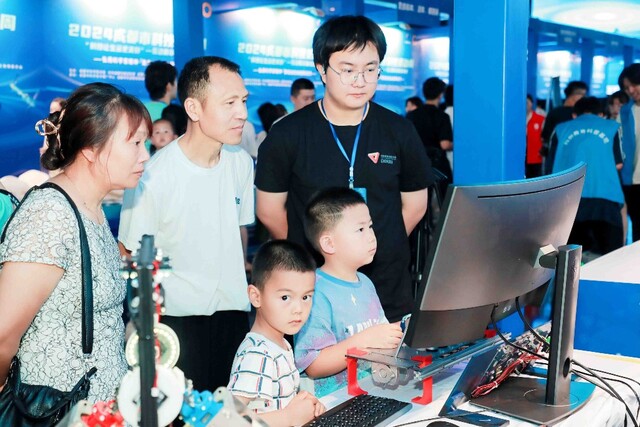 在机器人科普互动展区,各种智能机器人成为了最受欢迎的“明星”。“我们这次特别带来了机器人、机器狗等产品,它们在音乐伴奏下能进行高精度动作,完成高难度动作等,展现出了先进的人工智能技术和机械设计,能让观众充分感受到科技的魅力,加深对机器人、机器狗技术的了解和兴趣。”四川STEAM科创教育科普基地办公室主任袁颖说道。