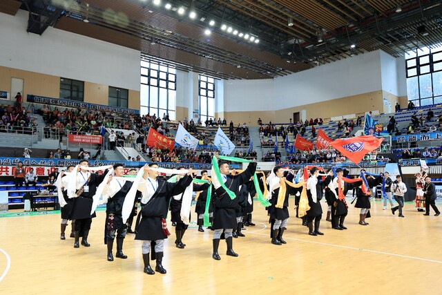 开幕式上,随着壤塘藏戏、南坪曲子等非物质文化遗产的展示表演,身着民族服饰的各个参赛队伍、教练员、领队、裁判员逐一入场亮相,现场气氛逐渐升温。融合了阿坝民俗特色的表演与篮球文化巧妙交织,瞬间点燃了整个川西高原的篮球热情。