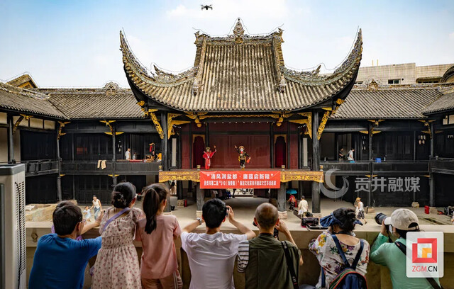 开场锣鼓一阵紧似一阵,越过南华宫高高的山墙,传遍贡井老街;闻讯而来的居民扶老携幼,跨过关闭多年的大门,陆陆续续在看台就坐。