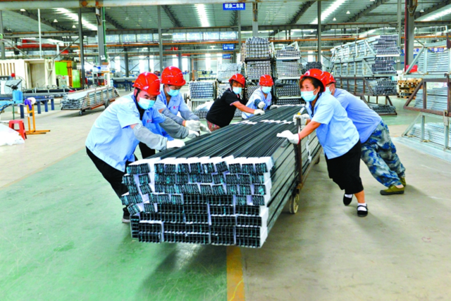 成铝新材料生产车间,工人在搬运铝材。夏雨婷 摄