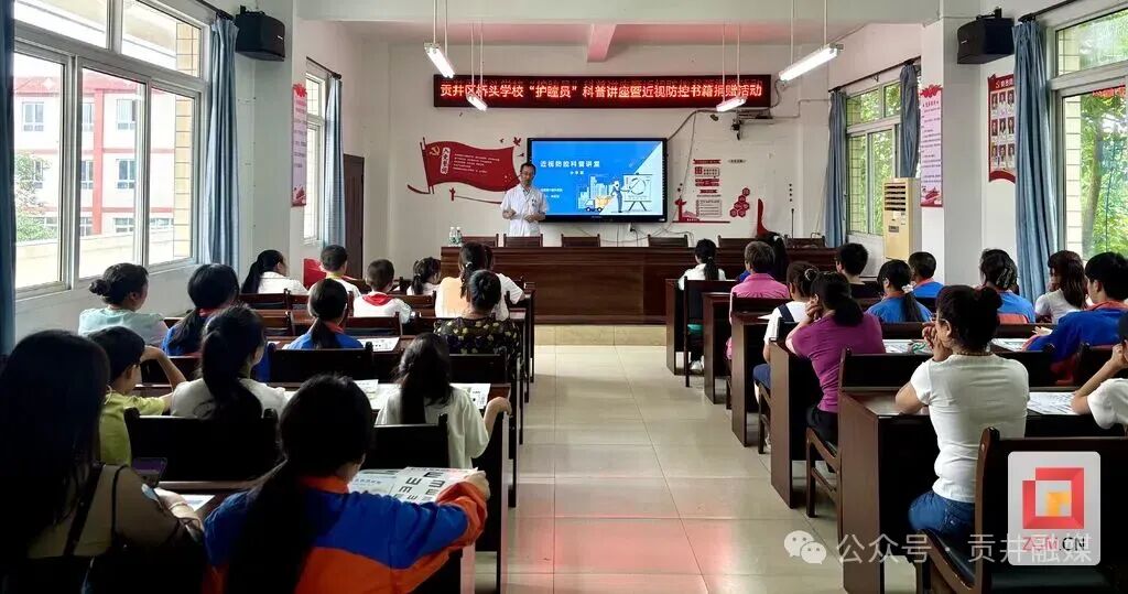 桥头学校是贡井区2024年“亮眼护瞳”工程唯一一所试点学校。仪式上,桥头学校副书记谭方瑶介绍说,目前,该学校已建立由校领导、政教处、班主任、学生及家长等组成的护瞳员队伍,与市第三人民医院携手开展每学年两次的视力筛查,检查维修和更新教室电灯、电子白板、窗户、课桌椅等设施设备,定期开展“爱眼护眼”演讲和主题班会,采用多种形式为学生们普及近视防控科普知识,培养他们良好的用眼习惯,并落实眼保健操制度,确保学生每天至少一小时的体育活动时间。同时,执行严格的电子产品使用管理制度等一系列“亮眼护瞳”措施。