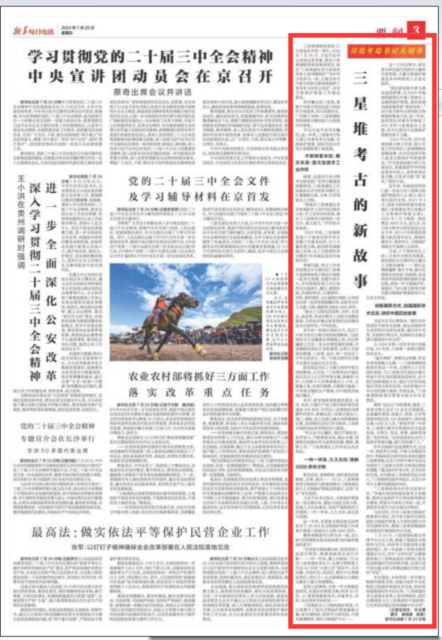 牢记习近平总书记嘱托,近一年来,三星堆考古和文博工作者在考古发掘、文物保护修复、国际交流合作等方面都取得了新进展。