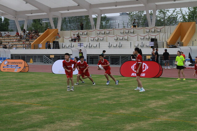 清晨的东安湖,波光粼粼,微风中伴随着些许凉意。在湖畔旁的田径运动场内,来自五湖四海的青少年运动健儿汇聚于此,意气风发。怀揣着对橄榄球运动的热爱,一场激烈的角逐即将拉开帷幕。