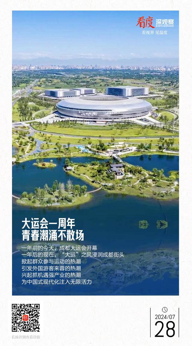 时光轮转,一年以来,成都借助大运“东风”,掀起群众参与运动的热潮,引发外国游客来蓉的热潮,兴起抓机遇强产业的热潮……“大运”之风吹进城市街头,青春潮涌不息,为中国式现代化注入无限活力。
